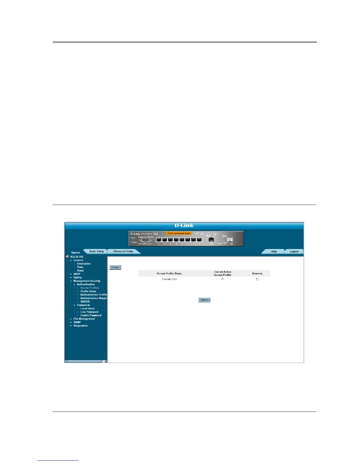 1. Click System > Management Security > Authentication > Access Profiles. The Access Profile Page