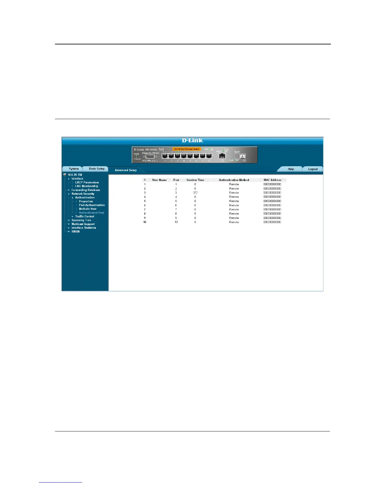 • User Name — Lists the supplicants that were authenticated, and are permitted on each port.