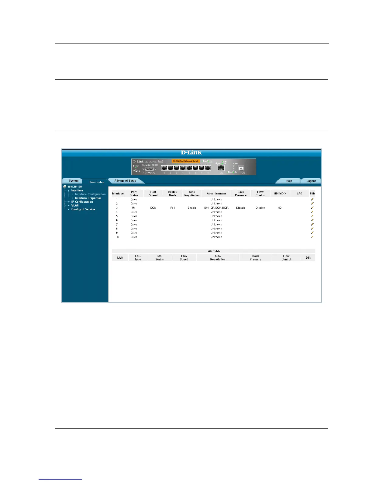 1. Click Basic Setup > Interface > Interface Configuration. The Interface Configuration Page opens.