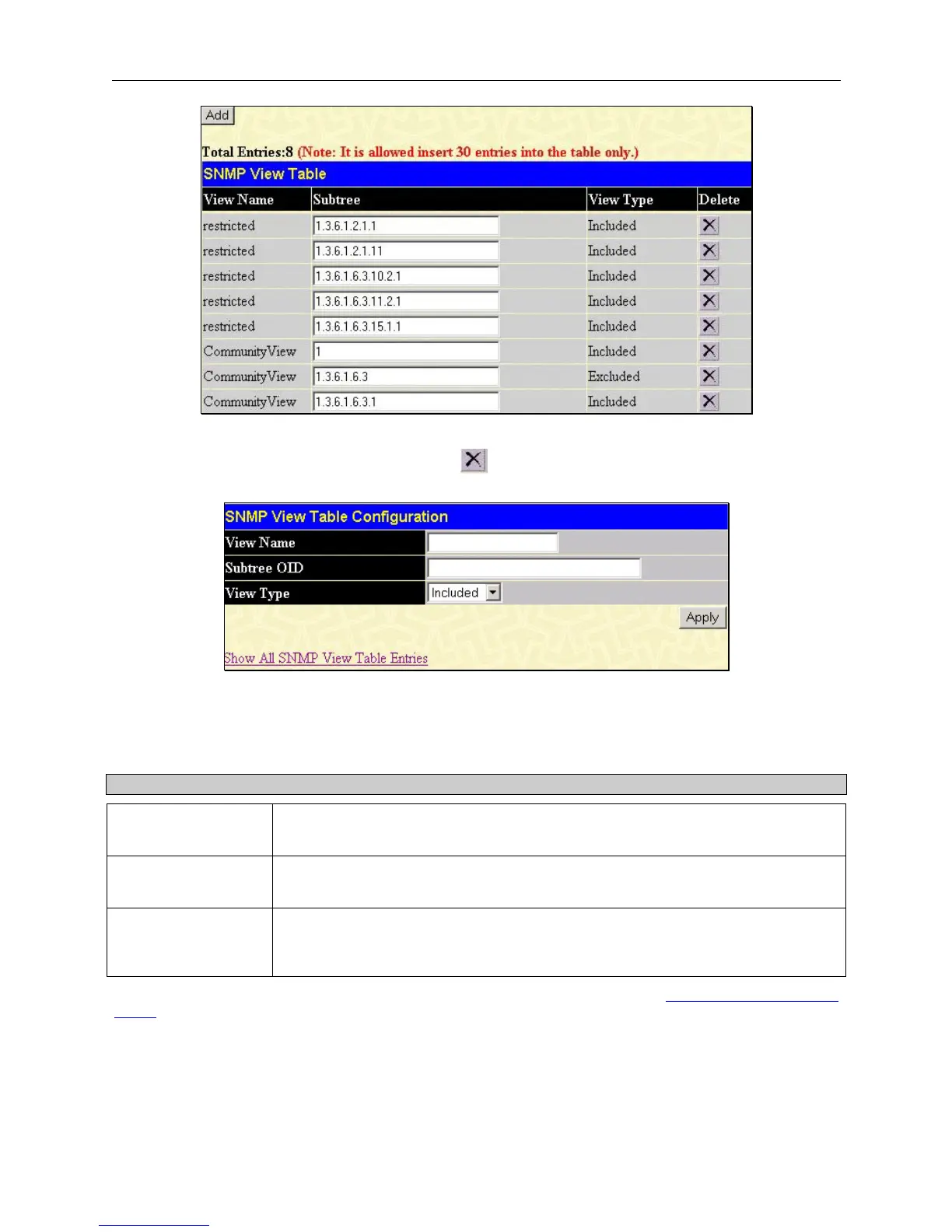To implement your new settings, click Apply. To return to the SNMP View Table, click the Show All SNMP View Table