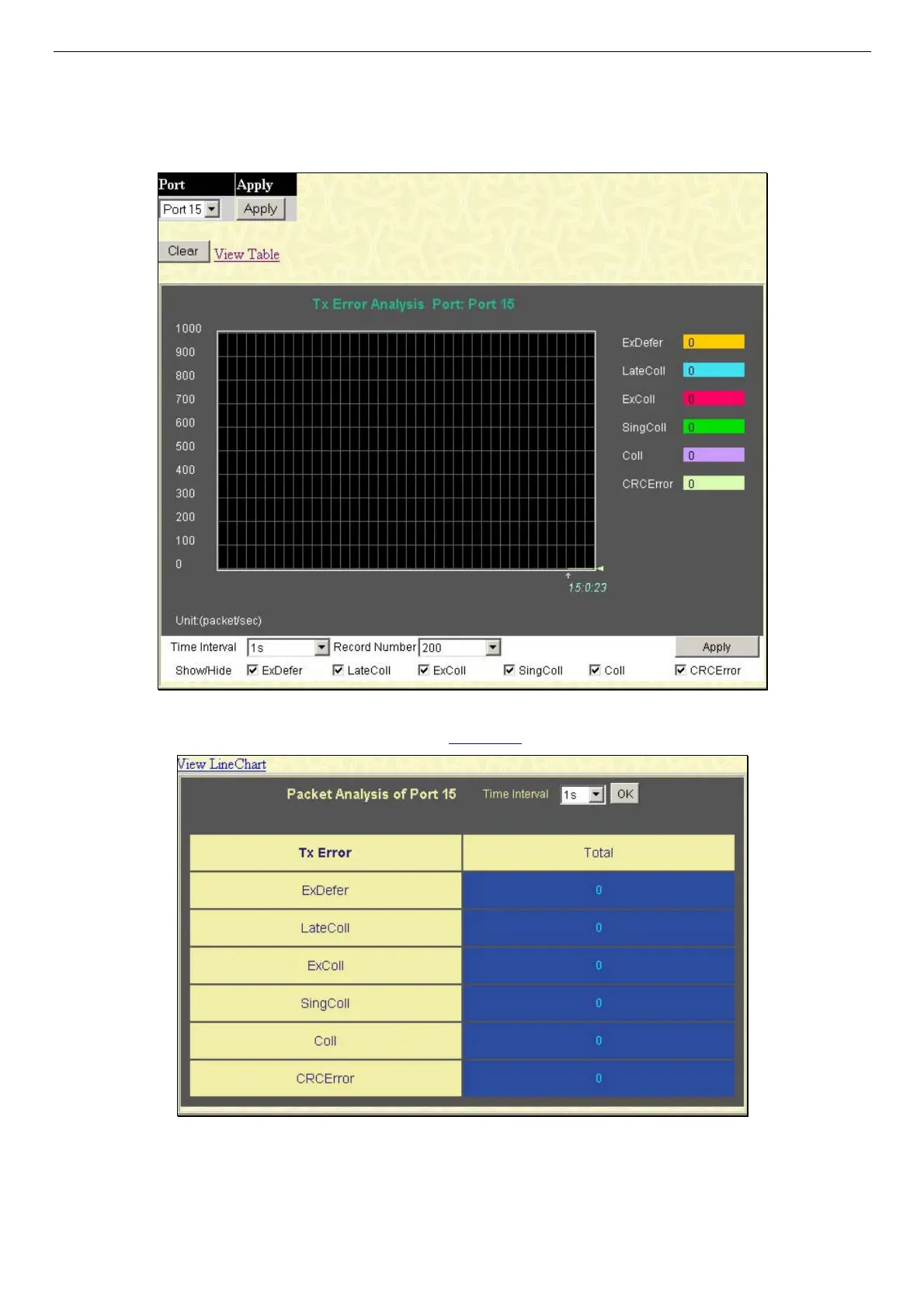 Click the Transmitted (TX) link in the Error folder of the Monitoring menu to view the following graph of error packets received
