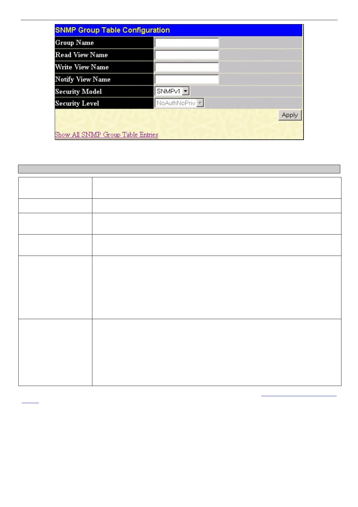 To implement your new settings, click Apply. To return to the SNMP Group Table, click the Show All SNMP Group Table