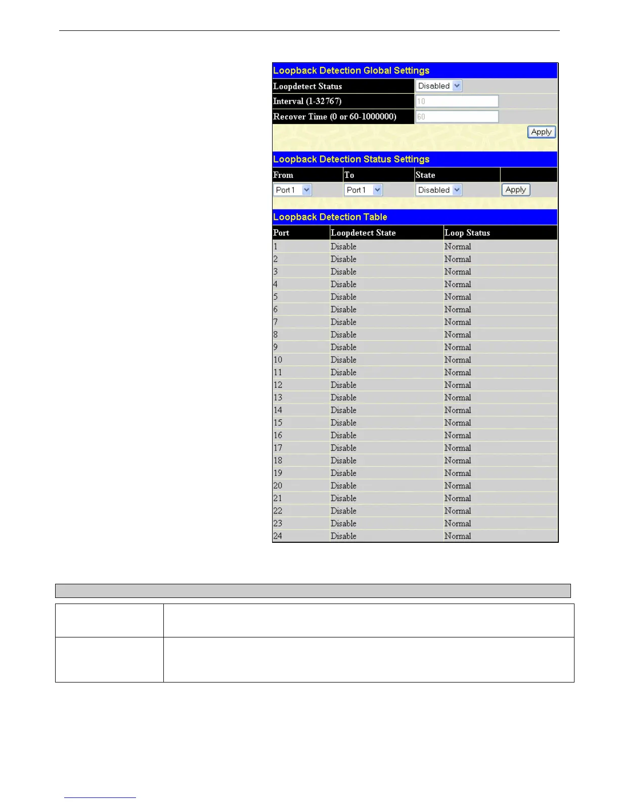 Choose whether to globally enable or disable the Loopback Detection function by using this