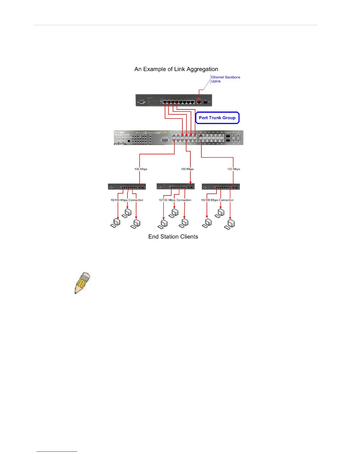 The Switch allows the creation of up to six link aggregation groups, each group consisting of 2 to 8 links (ports). All of the ports