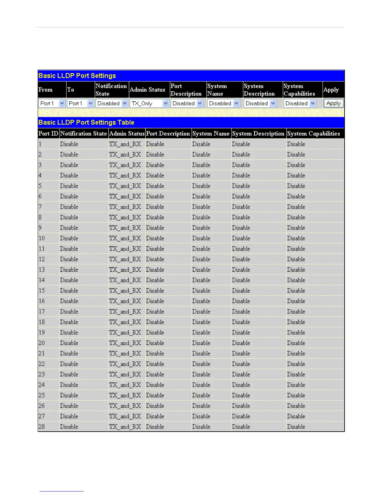 The following window is used to set up LLDP on individual port(s) on the Switch. To view this window click L2 Features >