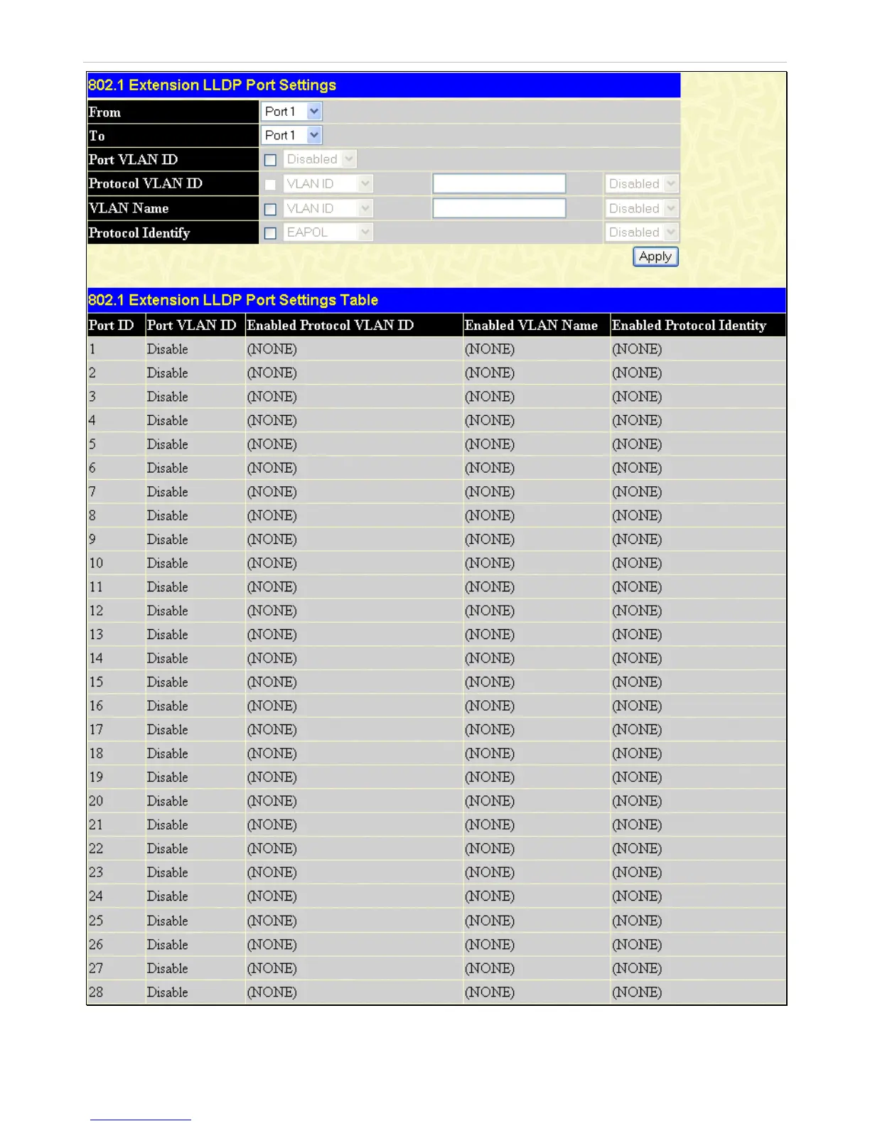 Figure 7- 49. 802.1 Extension LLDP Port Settings Table window