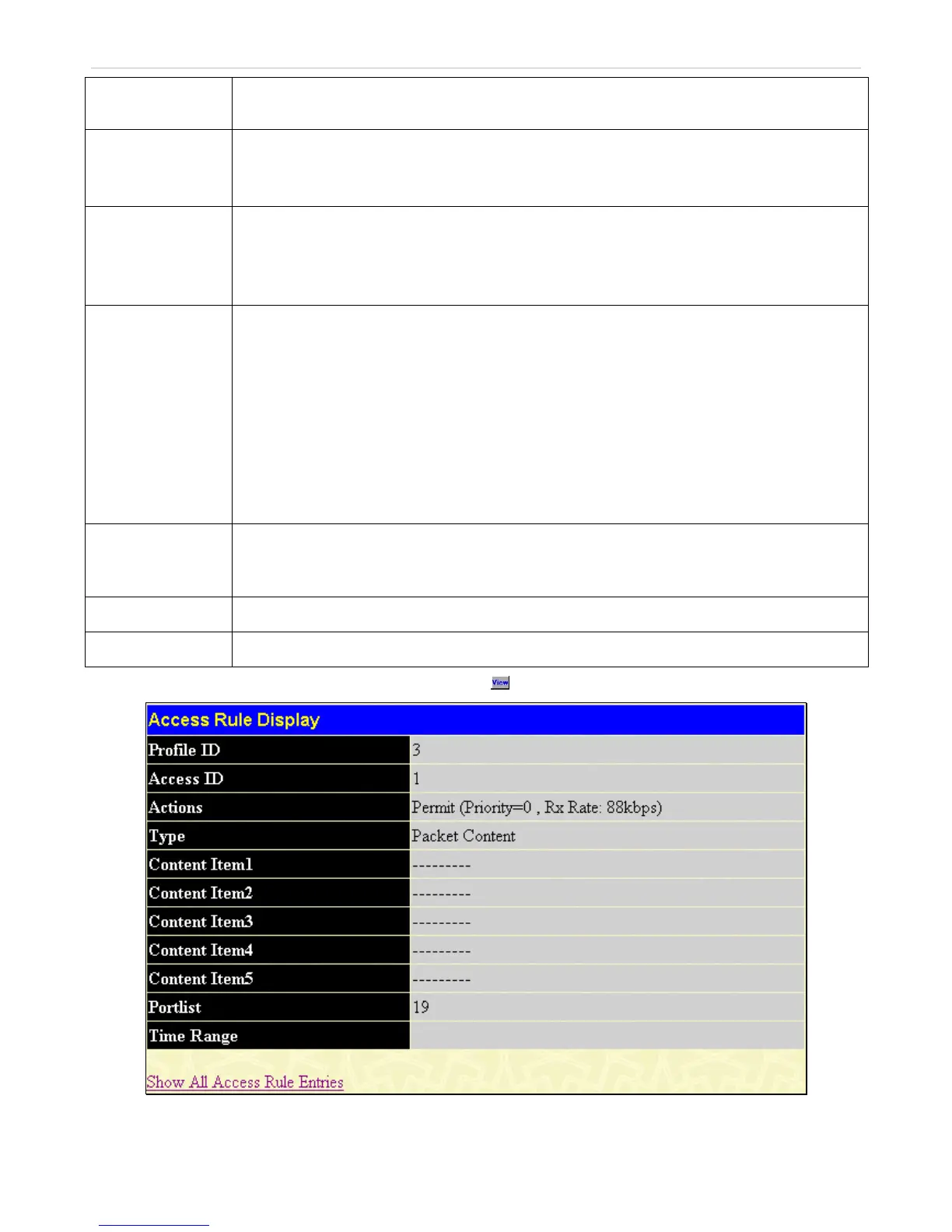 Figure 9- 14. Access Rule Display window (Packet Content)