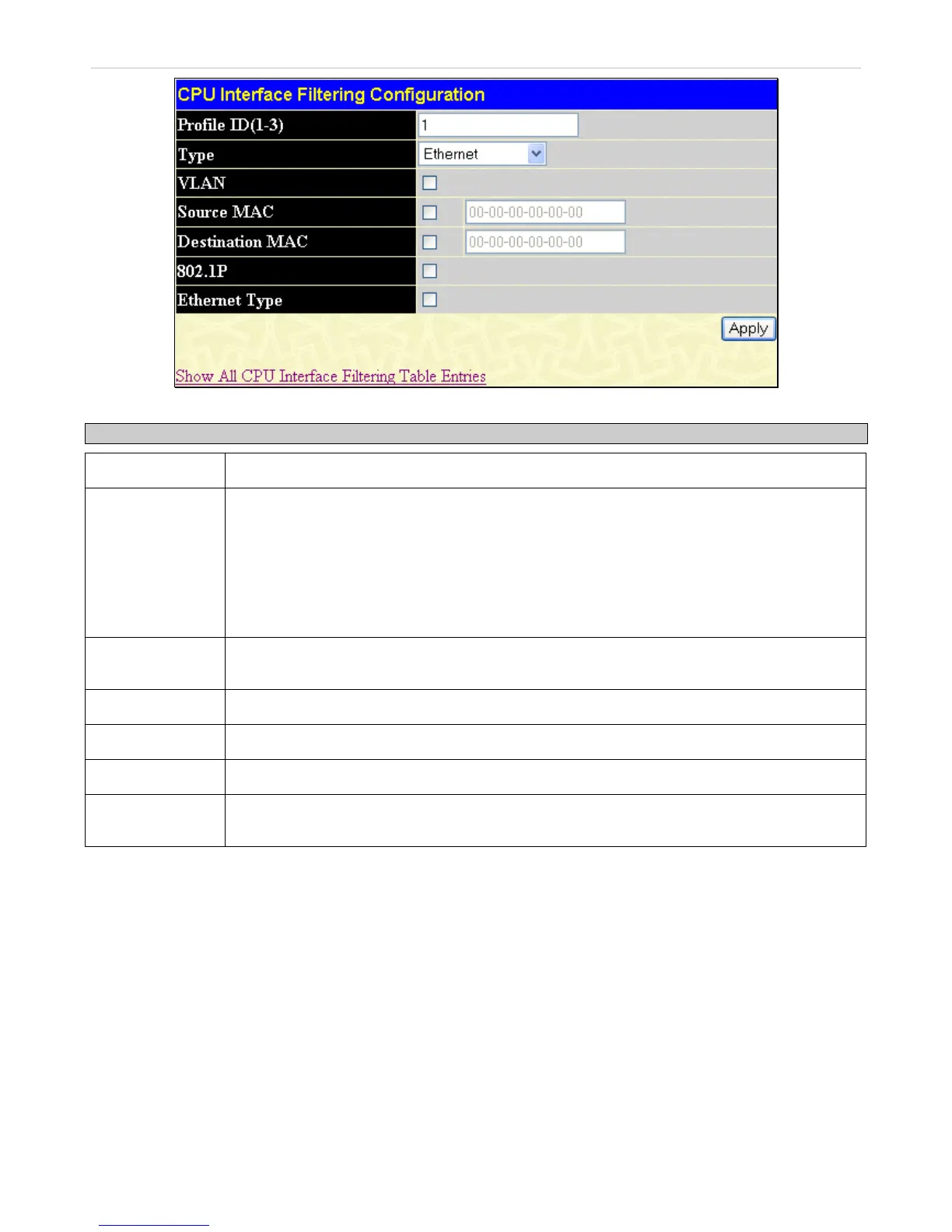 Figure 9- 17. CPU Interface Filtering Configuration window – Ethernet