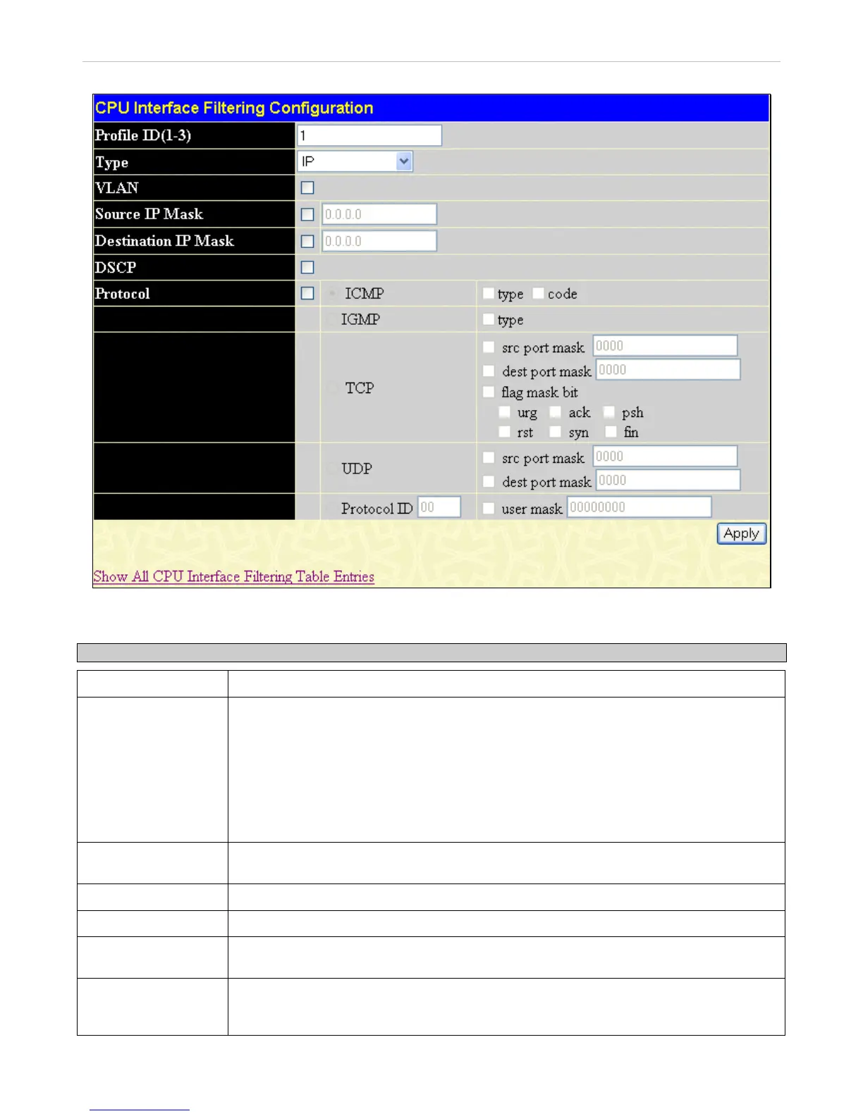 Figure 9- 18. CPU Interface Filtering Configuration window - IP