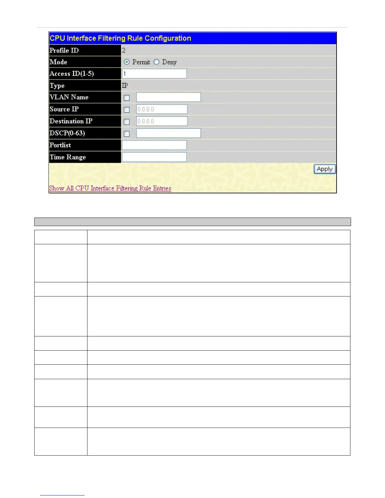 Figure 9- 25. CPU Interface Filtering Rule Configuration window – IP