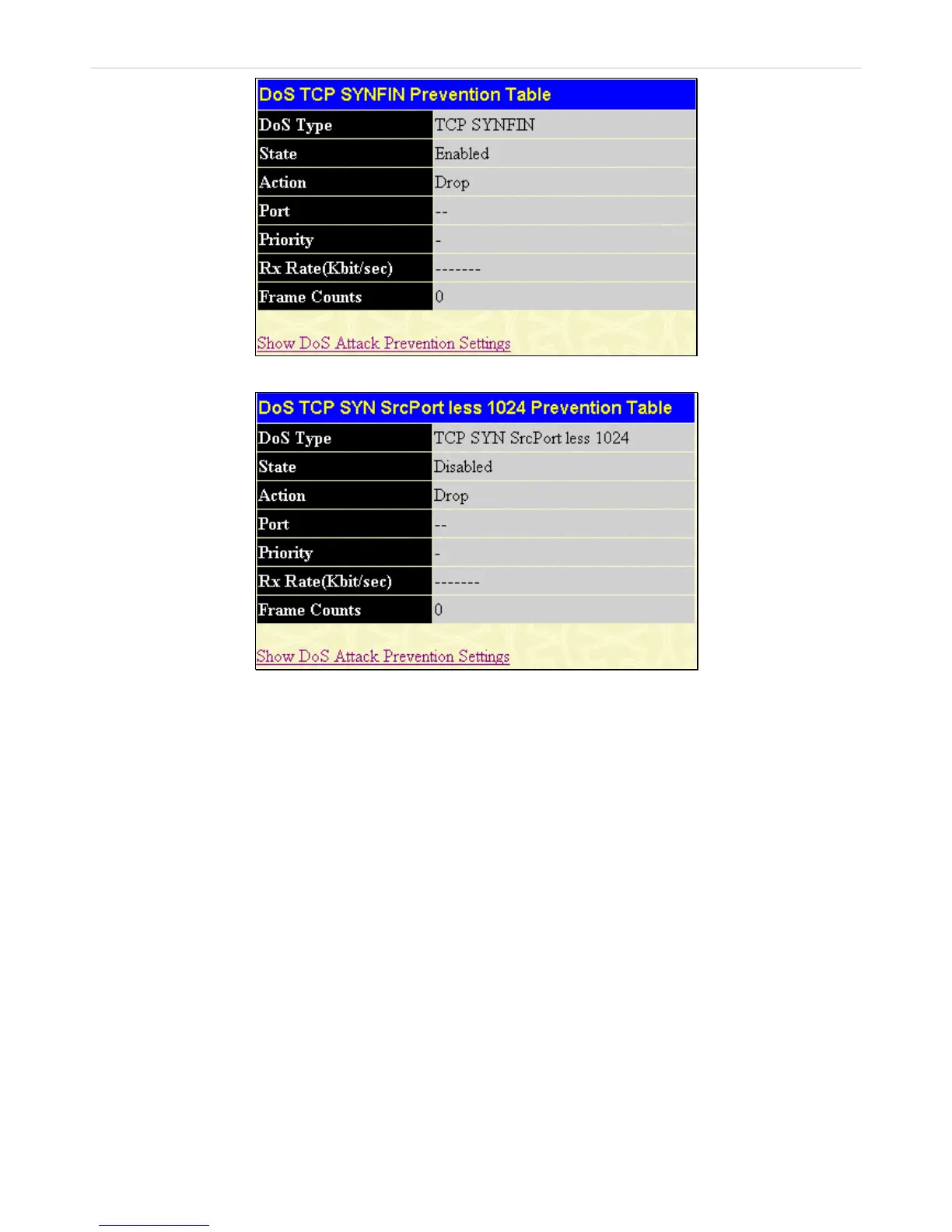 Figure 10- 60. DoS TCP SYN SrcPort less 1024 Prevention window – Summary window