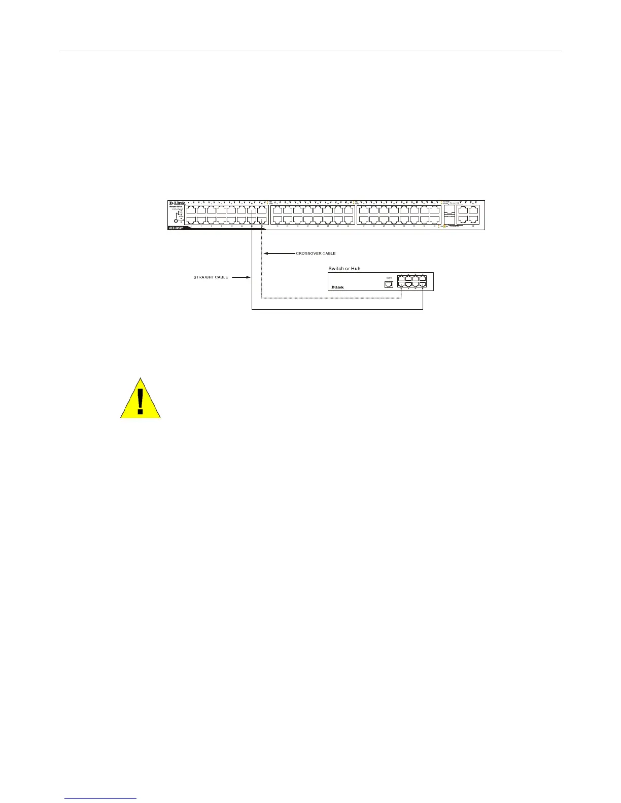 Figure 3- 2. Switch connected to a normal (non-Uplink) port on a hub or switch using a straight or crossover