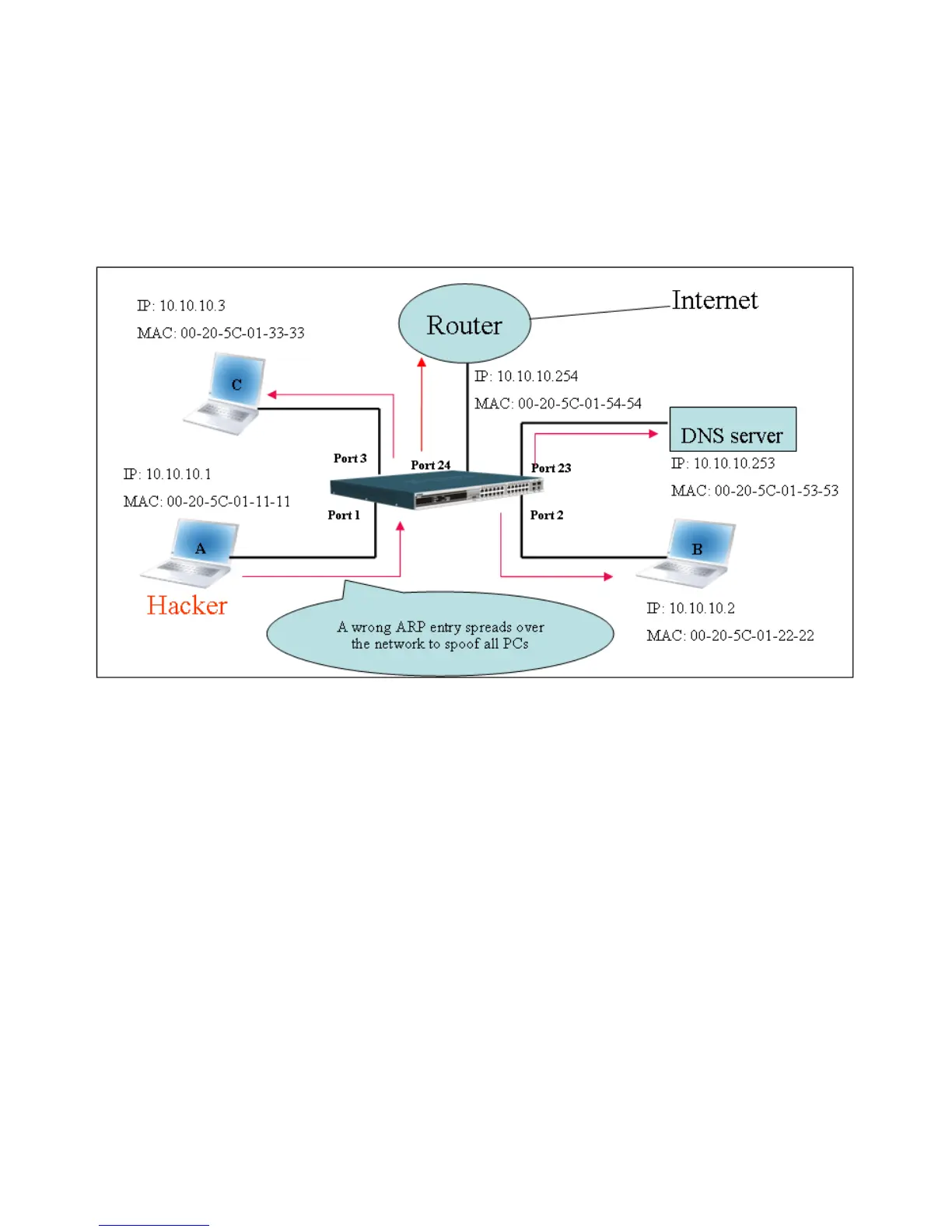 Figure-4 shows a hacker within a LAN to initiate ARP spoofing attack.