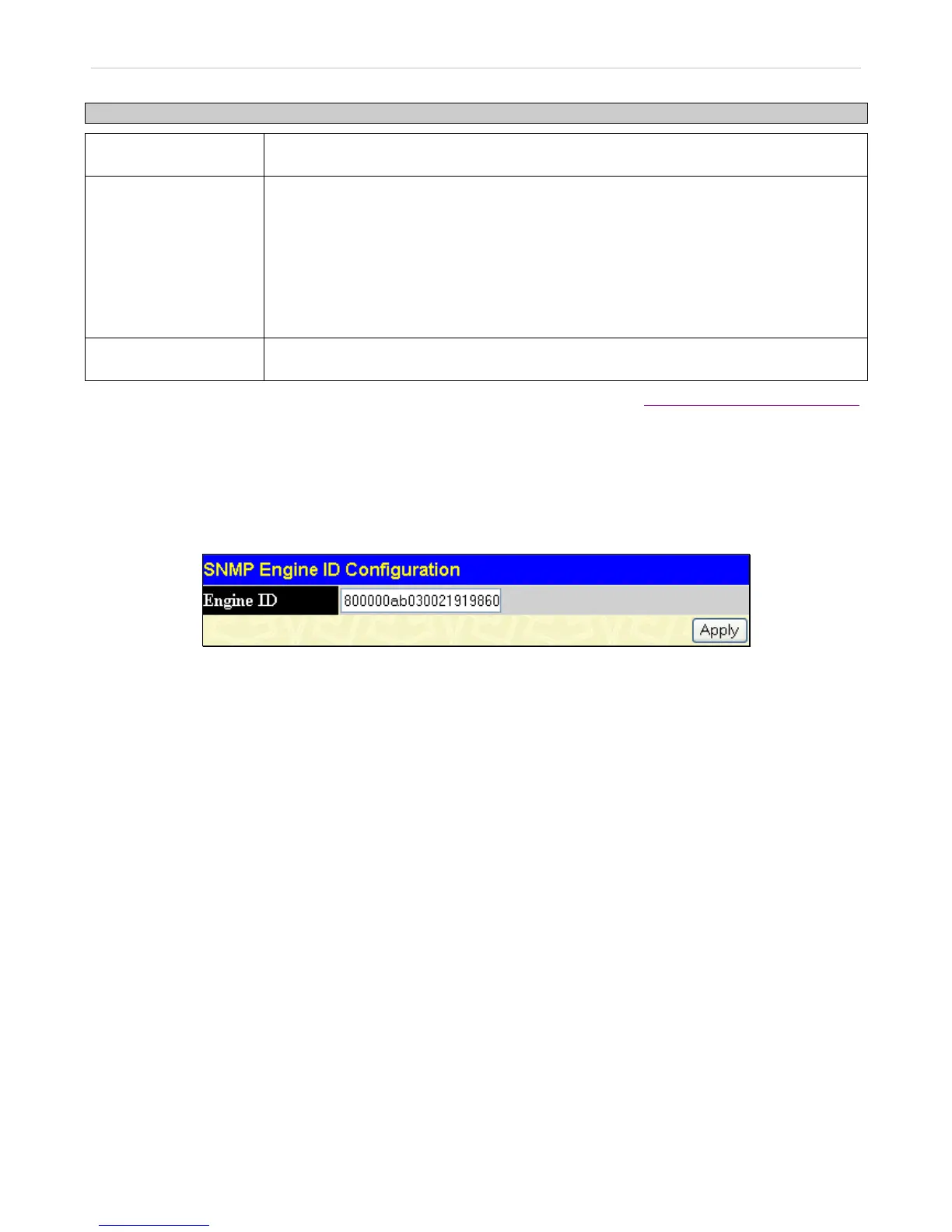 SNMP engine on the Switch. To display the Switch's SNMP Engine ID, click Administration > SNMP Manger > SNMP