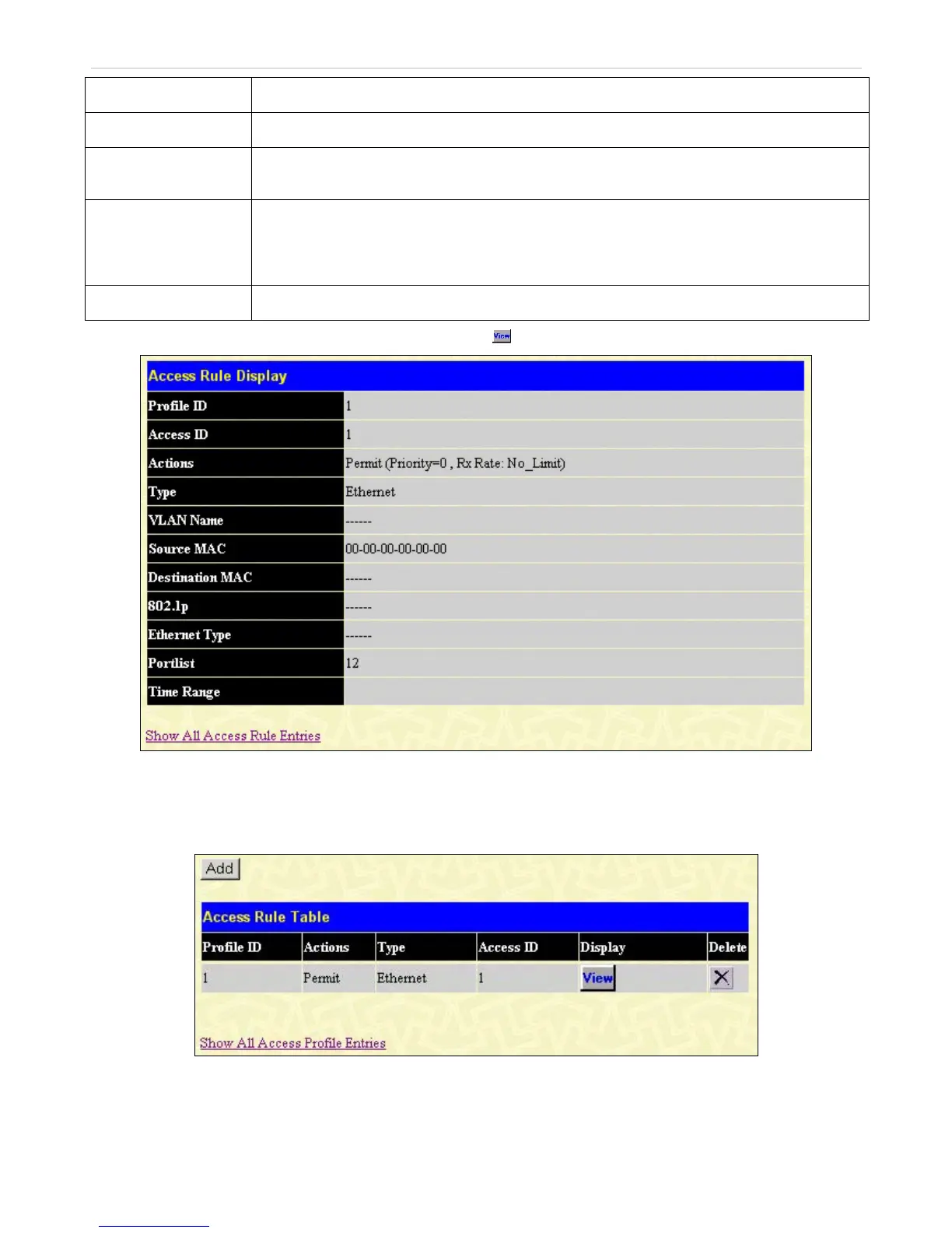 Figure 9- 11. Access Rule Display window (Ethernet)