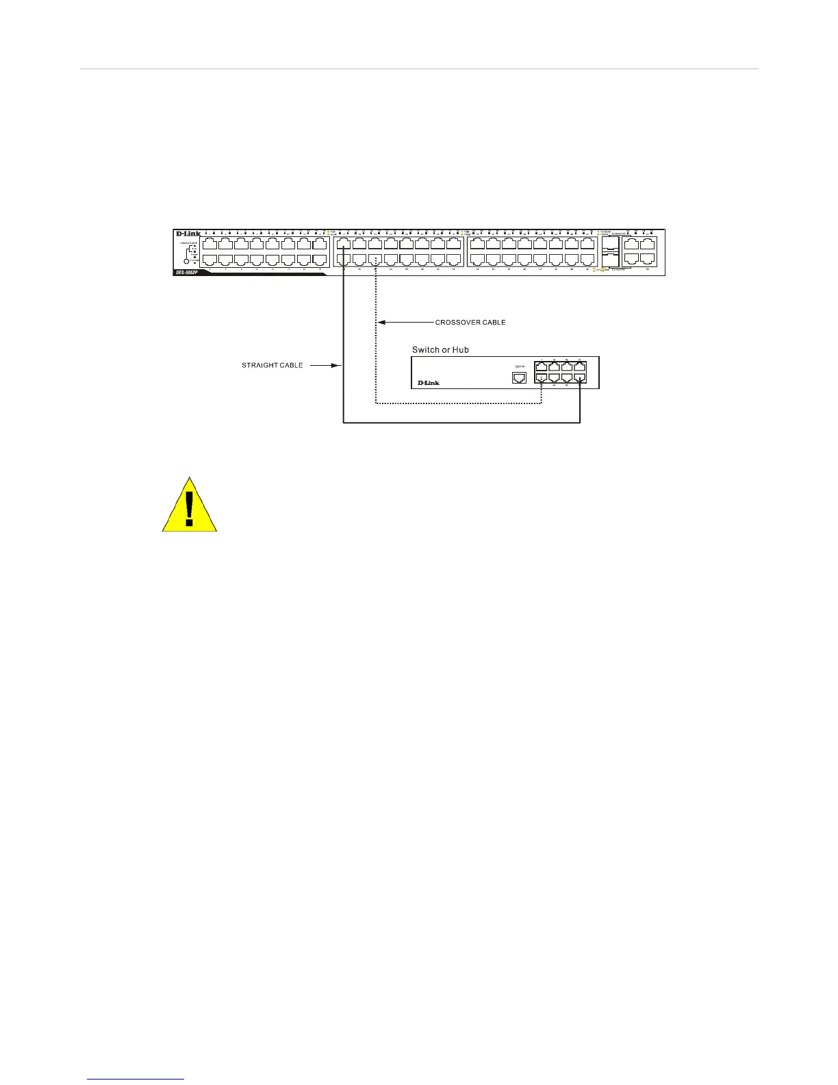 Figure 3- 2. Switch connected to a normal (non-Uplink) port on a hub or switch using a straight or crossover