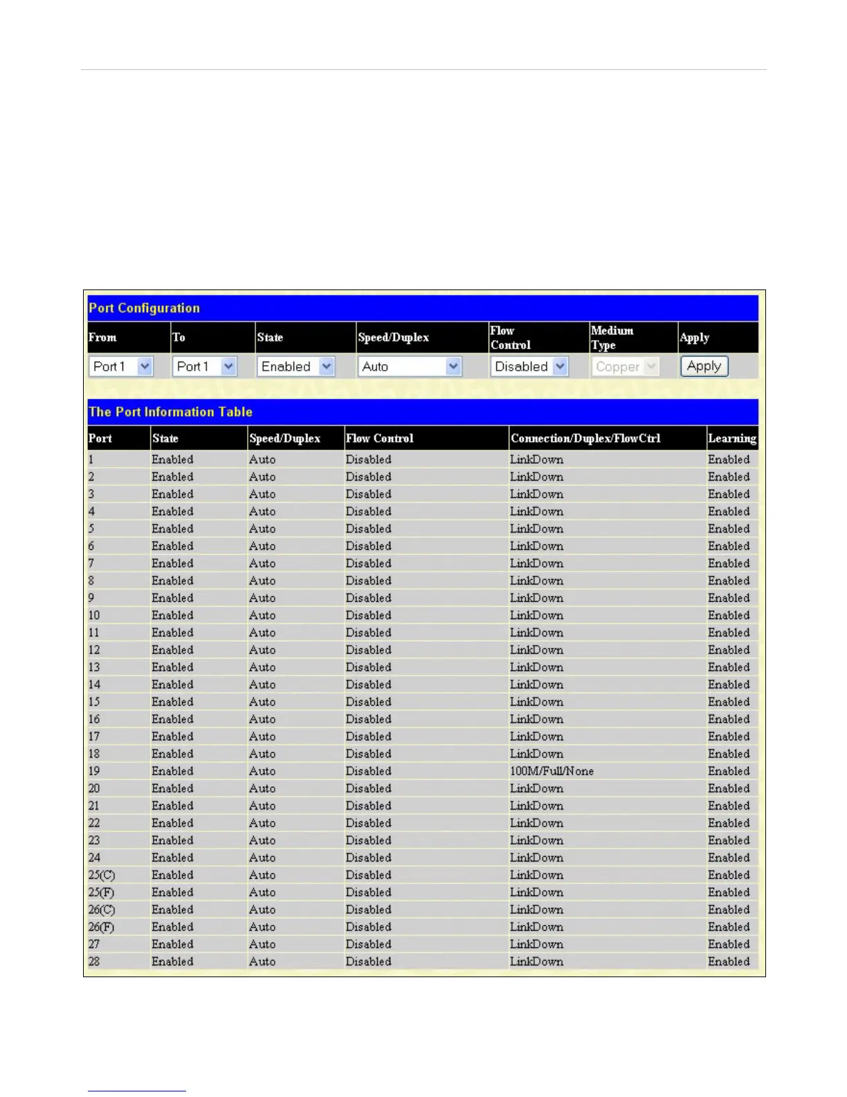 Click Administration > Port Configuration > Port Settings to display the following window: