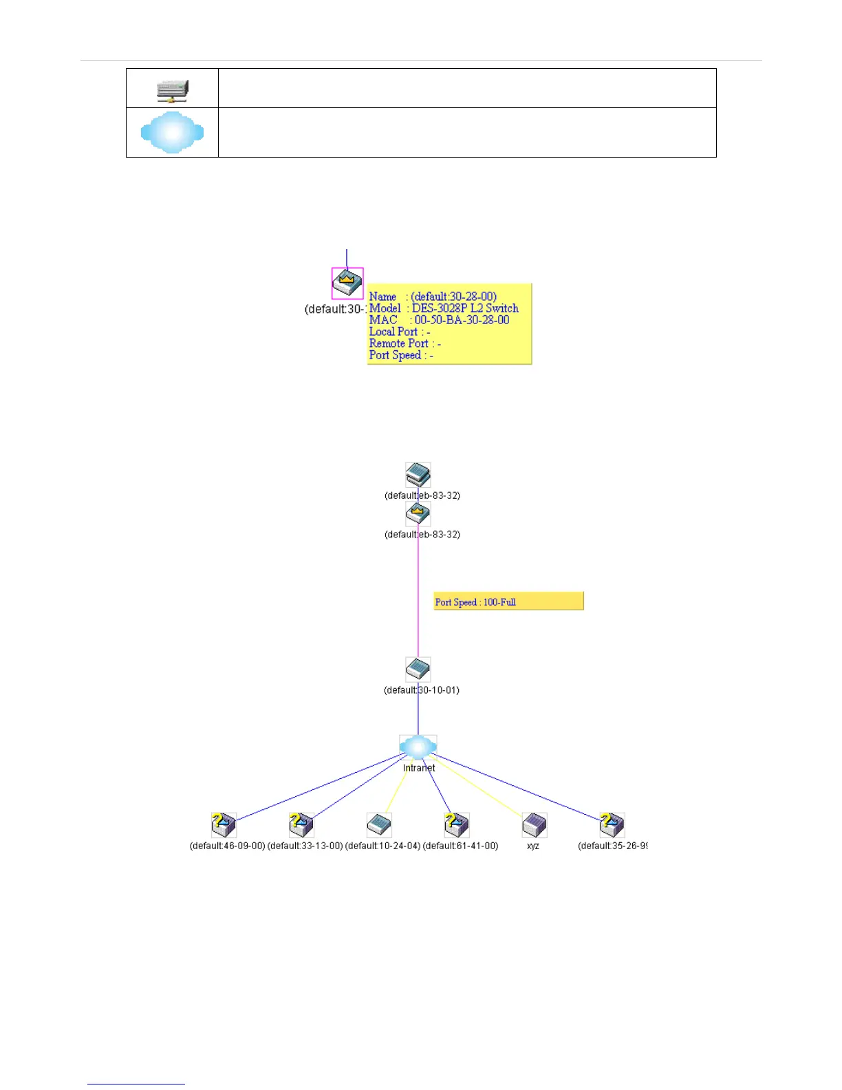 Setting the mouse cursor over a line between two devices will display the connection speed between the two devices, as shown