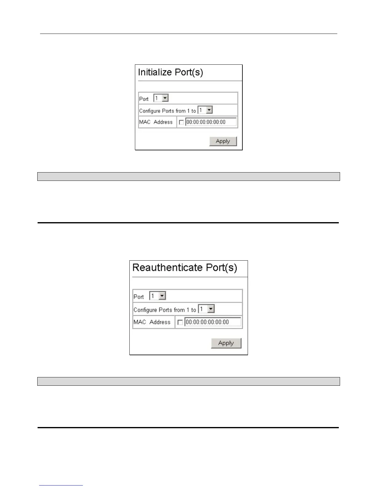 Use this to initialize the 802.1x functions on a specified ports or for specified MAC addresses operating from a specified range