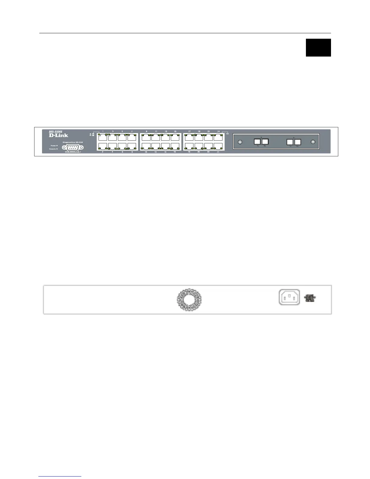 This chapter describes the front panel, rear panel, optional plug-in modules, and LED indicators of the DES-3226S.