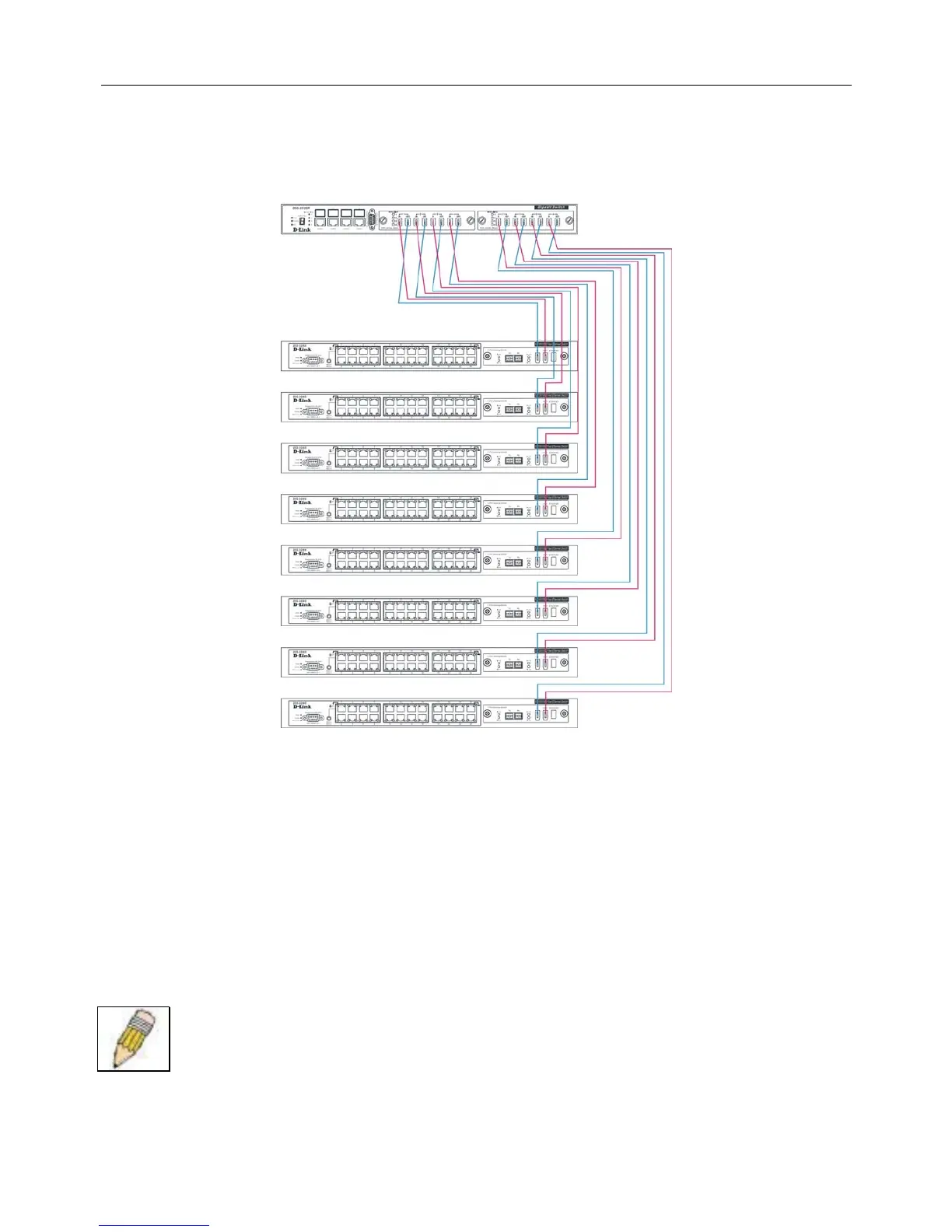 Setting up a star topology with a DGS-3212SR or DGS-3312SR is a simple matter. Each DES-3226S connects to the master