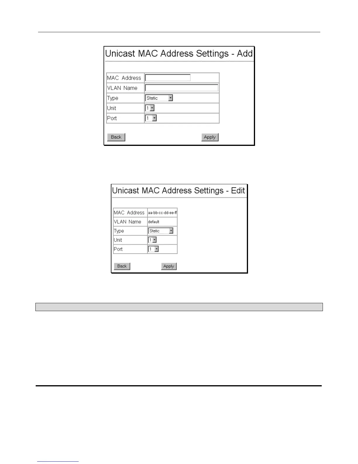 Figure 6 - 55. Unicast MAC Address Settings − Edit