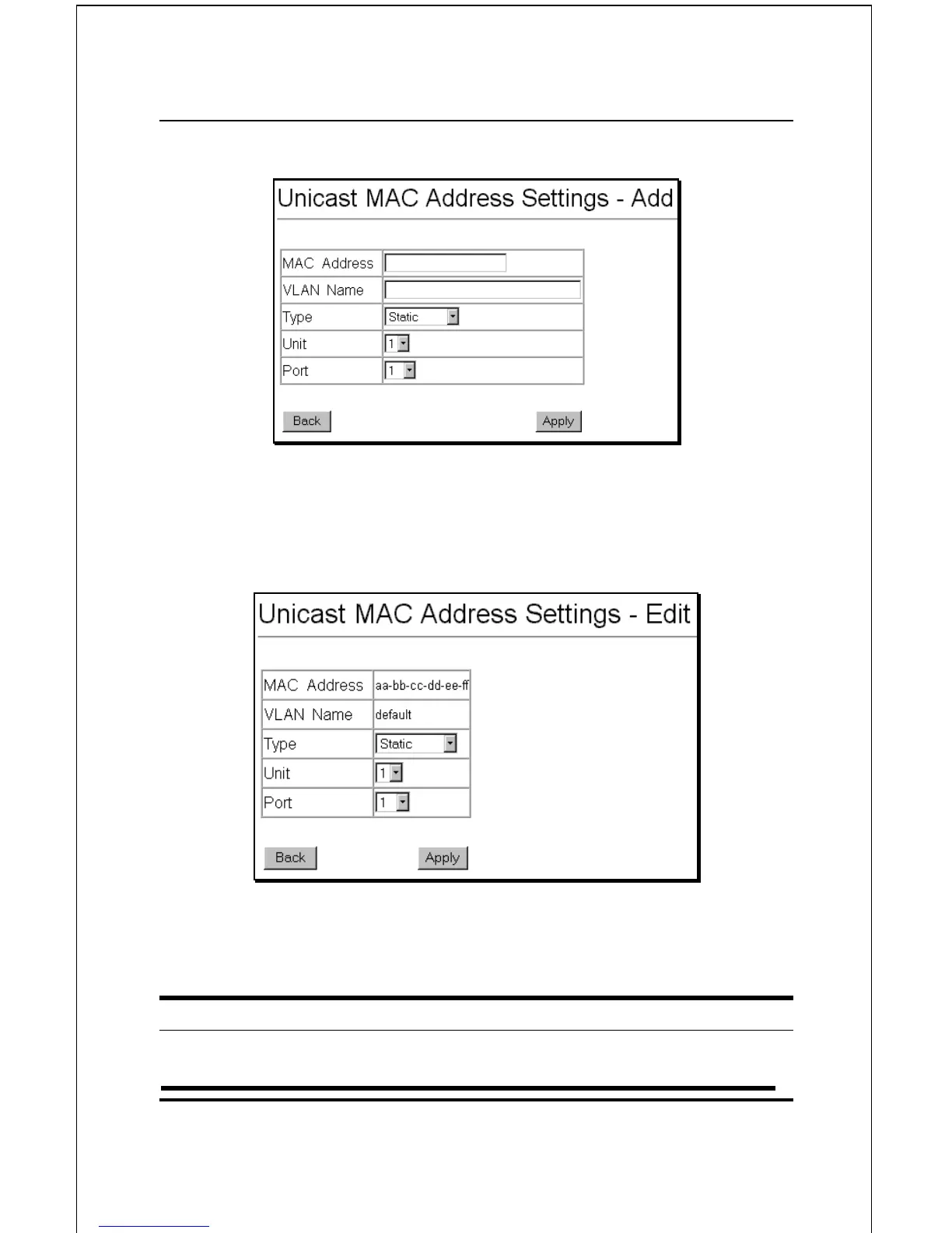Figure 6-63. Unicast MAC Address Settings − Add