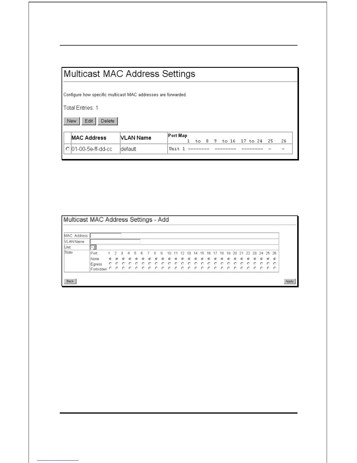 Figure 6-66. Multicast MAC Address Settings − Add