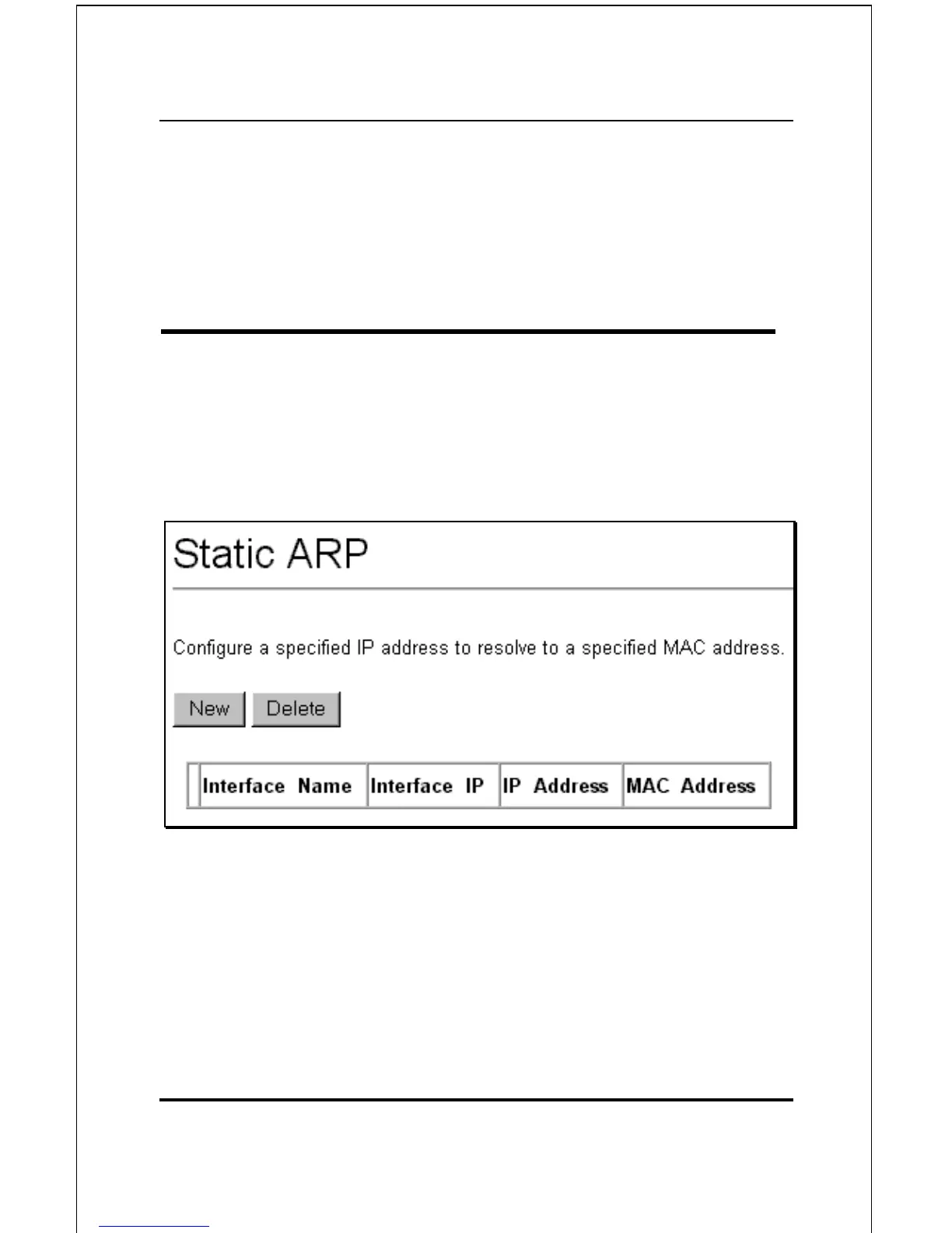 To add a new static ARP entry, click the New button: