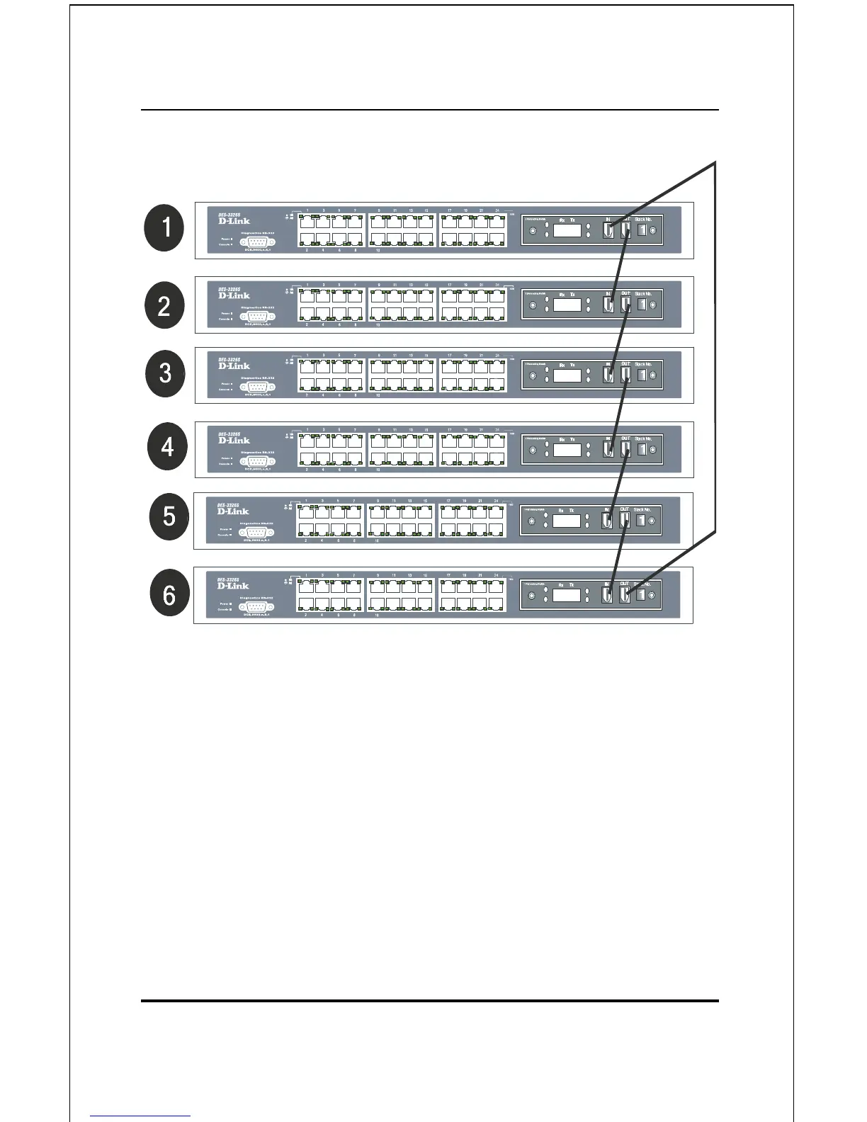 connected to another switch’s OUT stacking port.