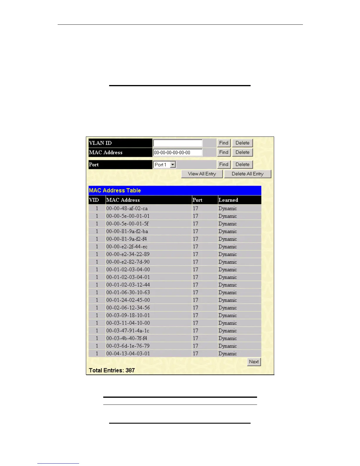 Figure 10 - 15. MAC Address Table window
