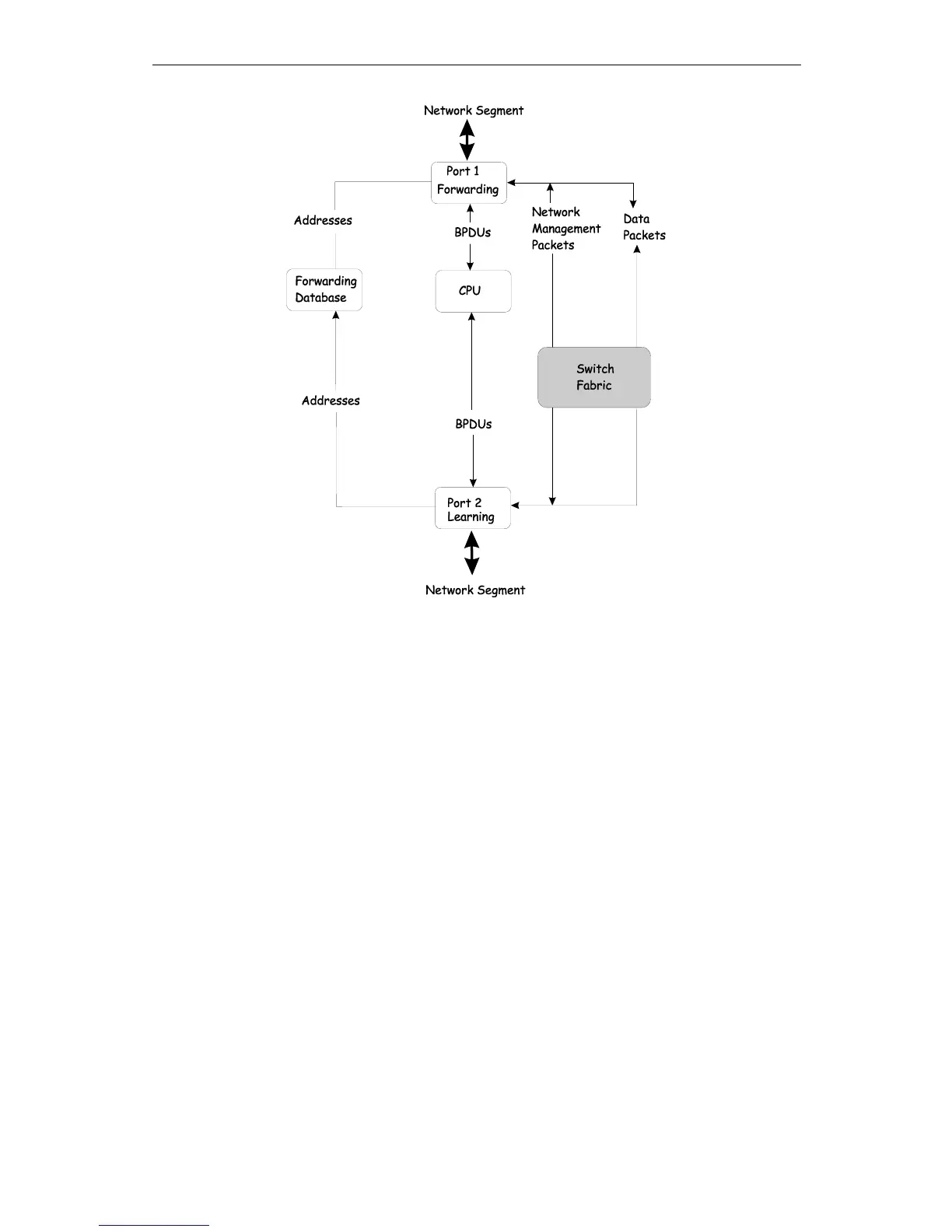 • Does not receive BPDUs for transmission from the system CPU.