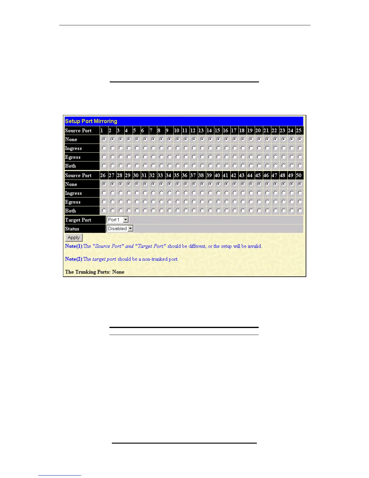 Figure 7 - 6. Setup Port Mirroring window