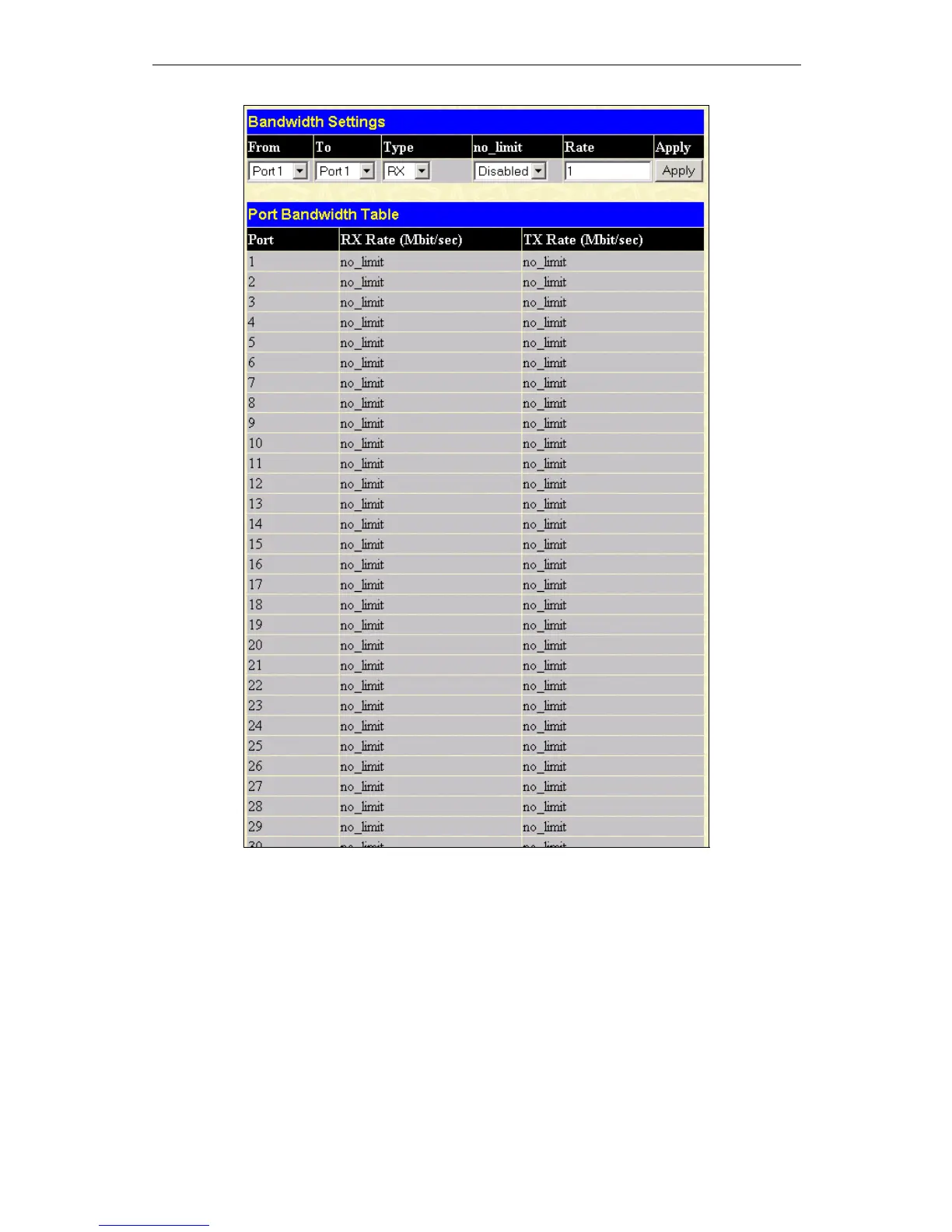 prefer, manually enter a value in the Rate field, and then click Apply. Please note that if no_limit is Enabled, the Switch will not