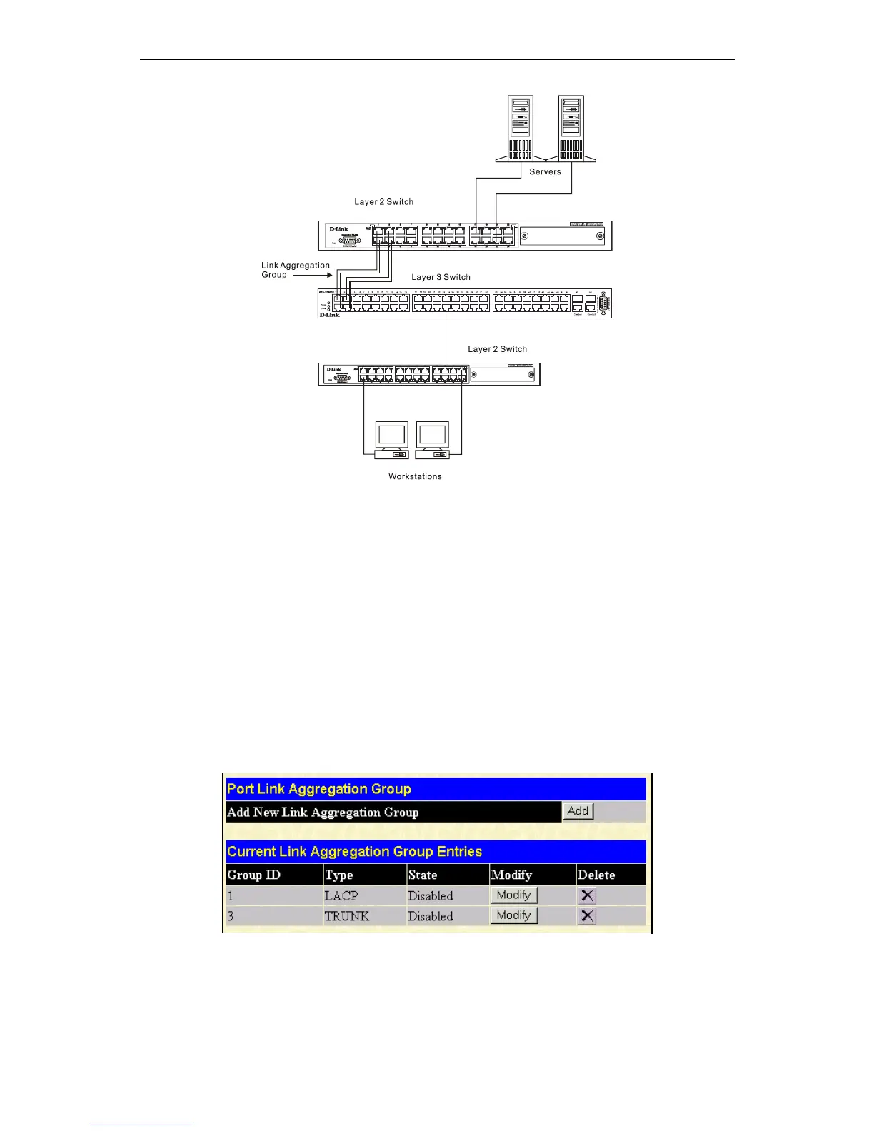 link aggregation group, click the corresponding button under the Delete heading in the Current Link Aggregation Group Entries