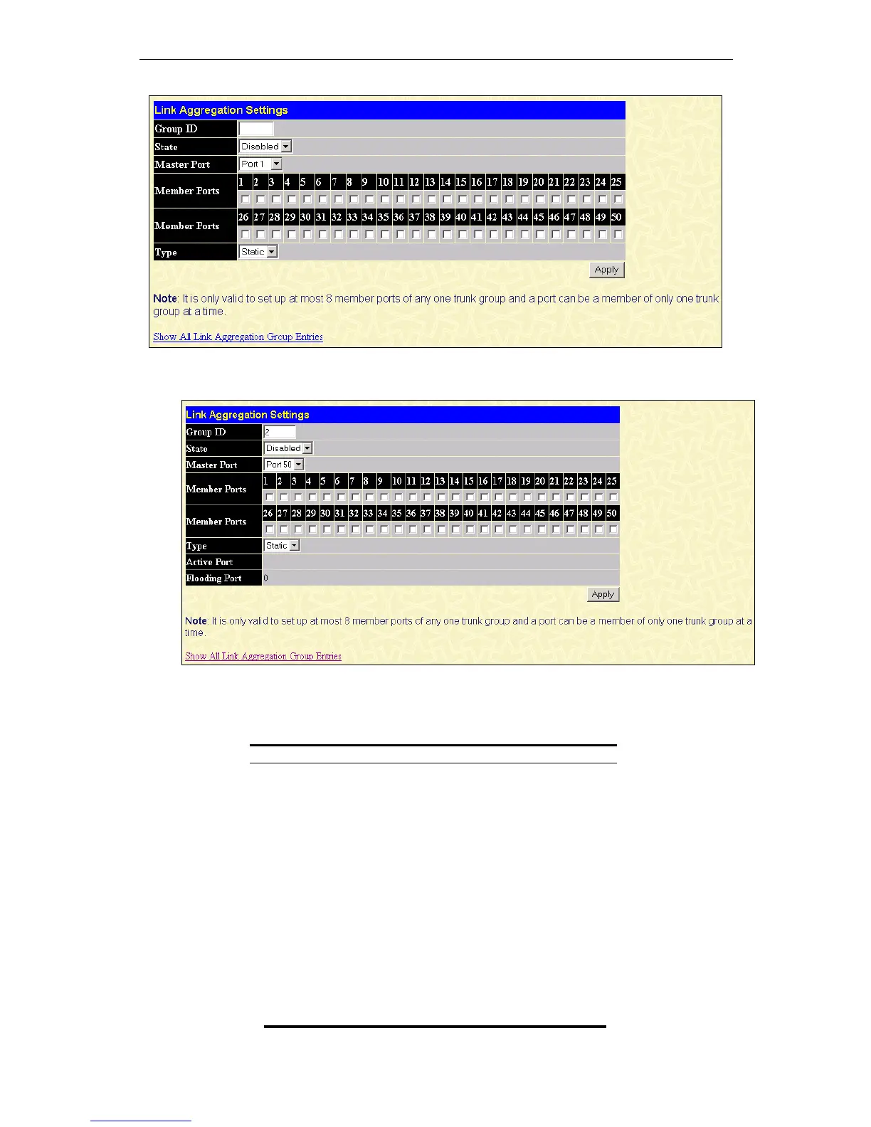 Figure 7 - 35. Port Link Aggregation Settings (Modify) window