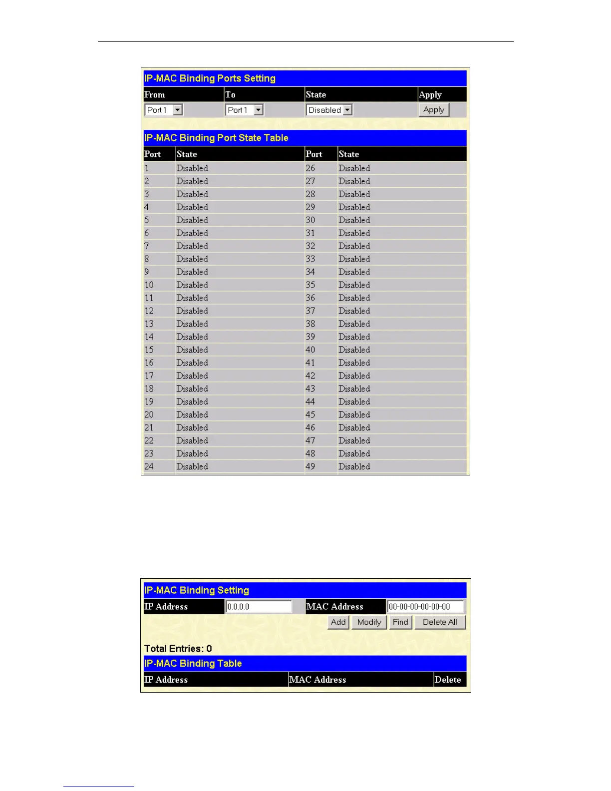 entry, make the desired changes in the appropriate field and Click Modify. To find an IP-MAC binding entry, enter the IP and