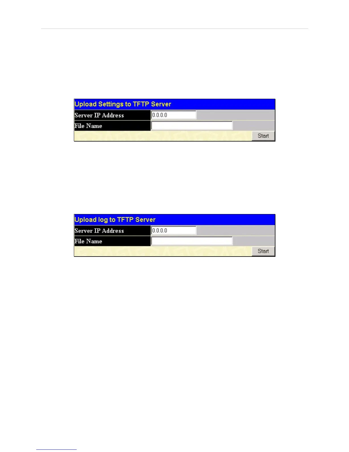 Click Start to record the IP address of the TFTP server and to initiate the file transfer.