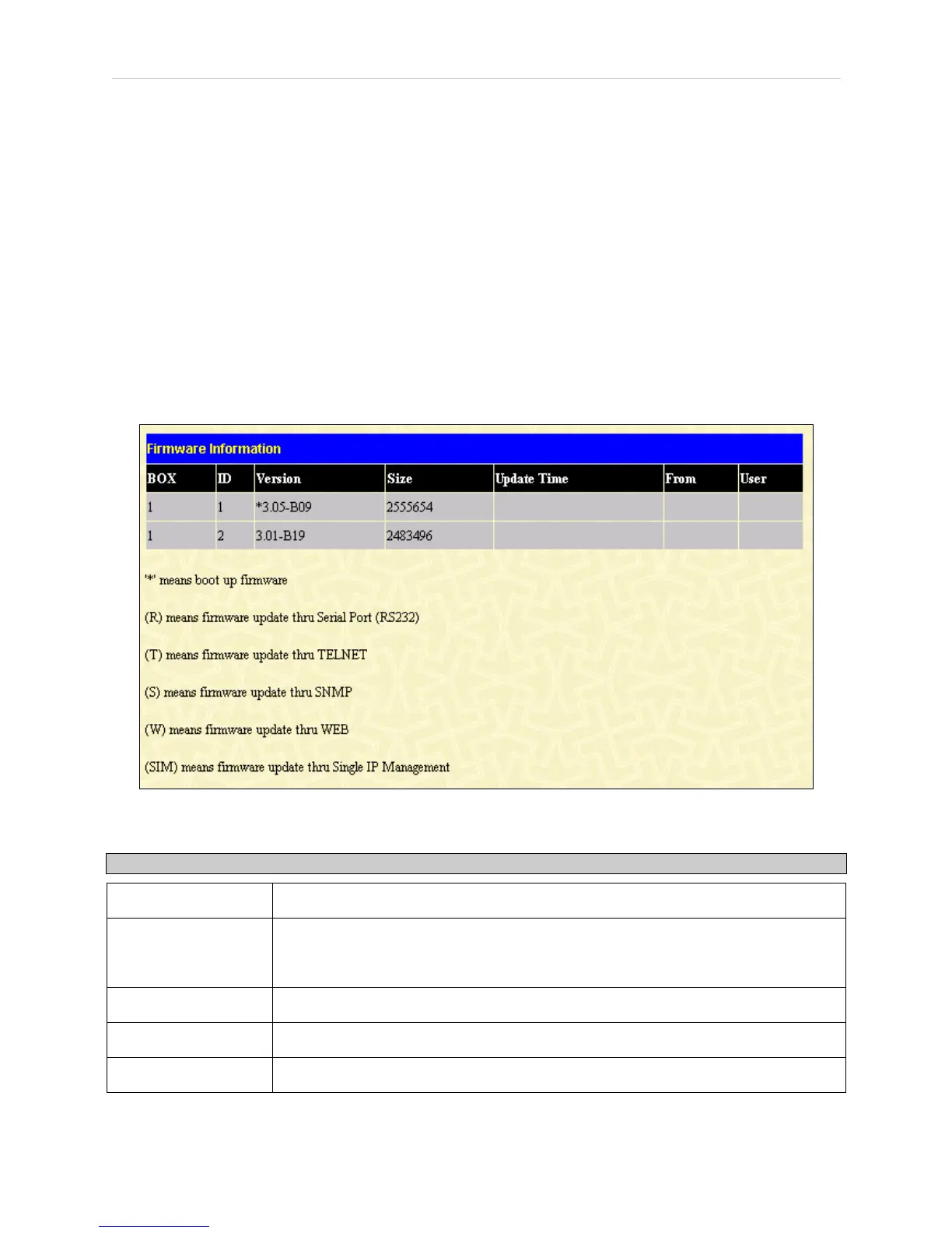 view information regarding firmware located on the Switch. The Switch allows two firmware images