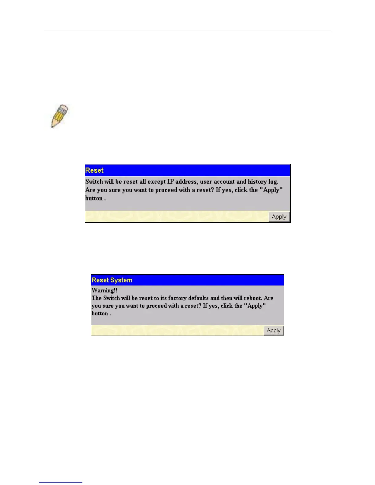 other configuration parameters to their factory defaults. If the Switch is reset using this window, and