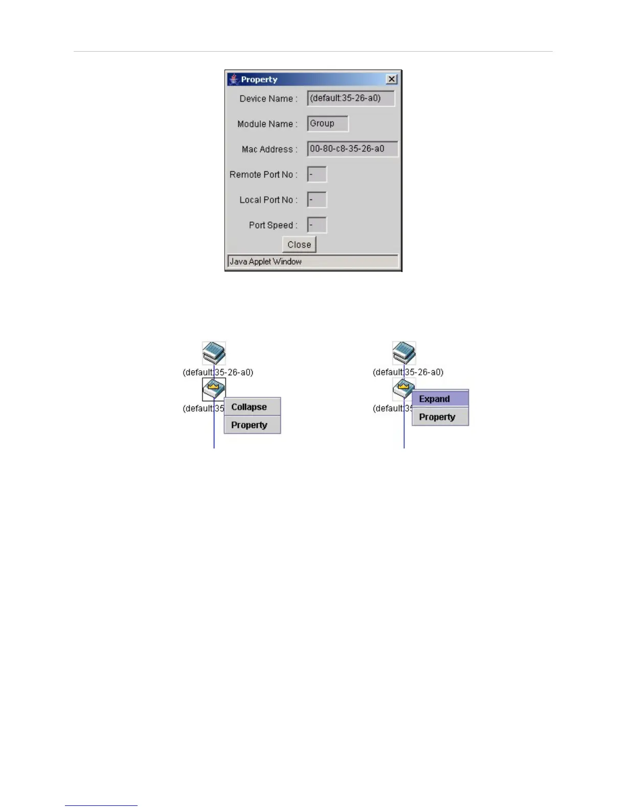 • Property - to pop up a window to display the group information.