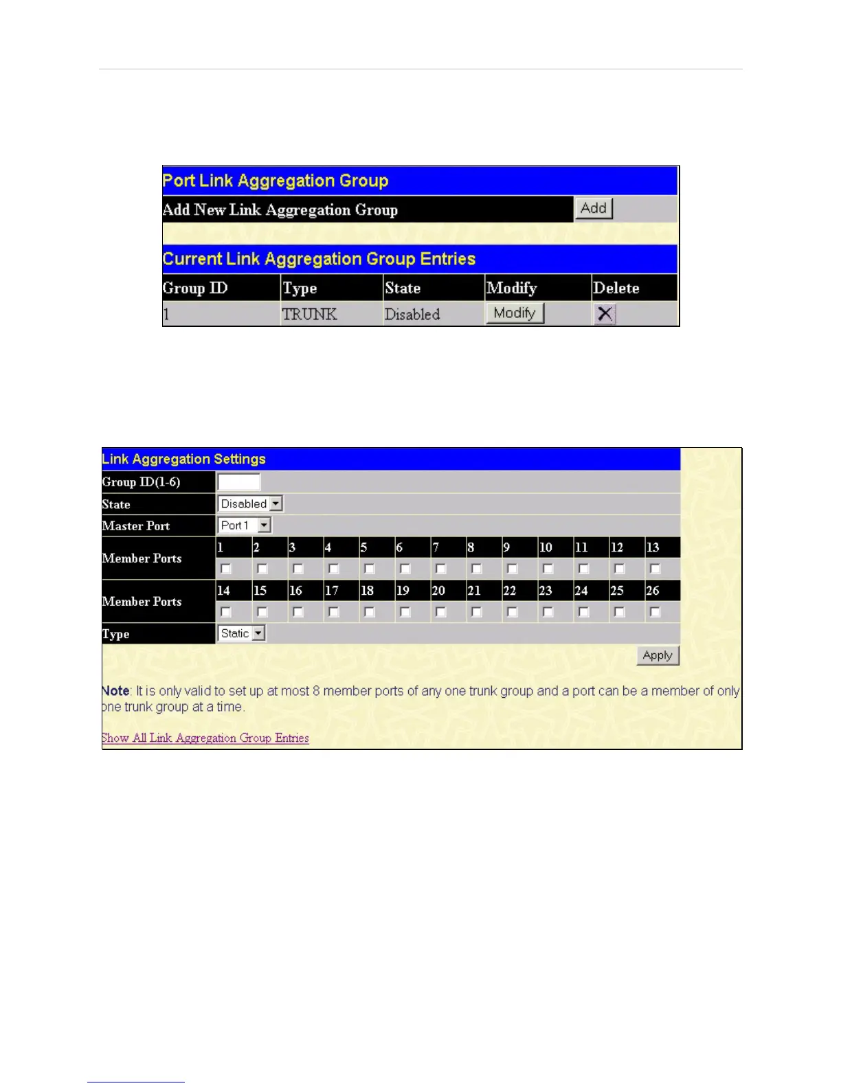 Aggregation Settings window (see example below) to set up trunk groups. To modify a port trunk