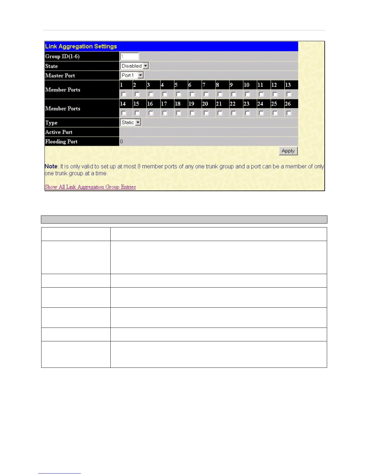 cessfully created trunk groups will be show in the Current Link Aggregation Group Entries table as