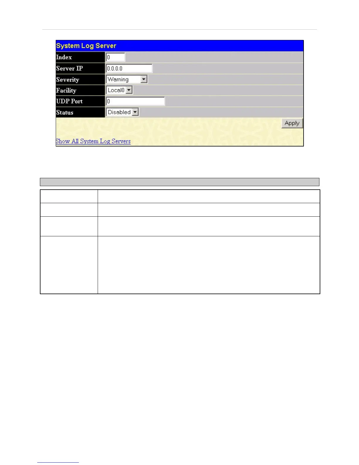 Syslog server settings index (1-4).