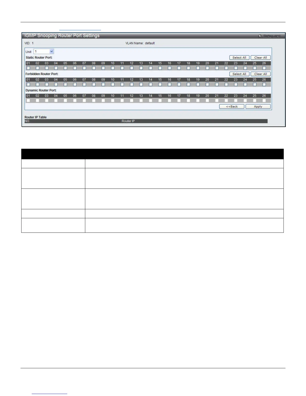 Figure 4-44 IGMP Snooping Router Port Settings window