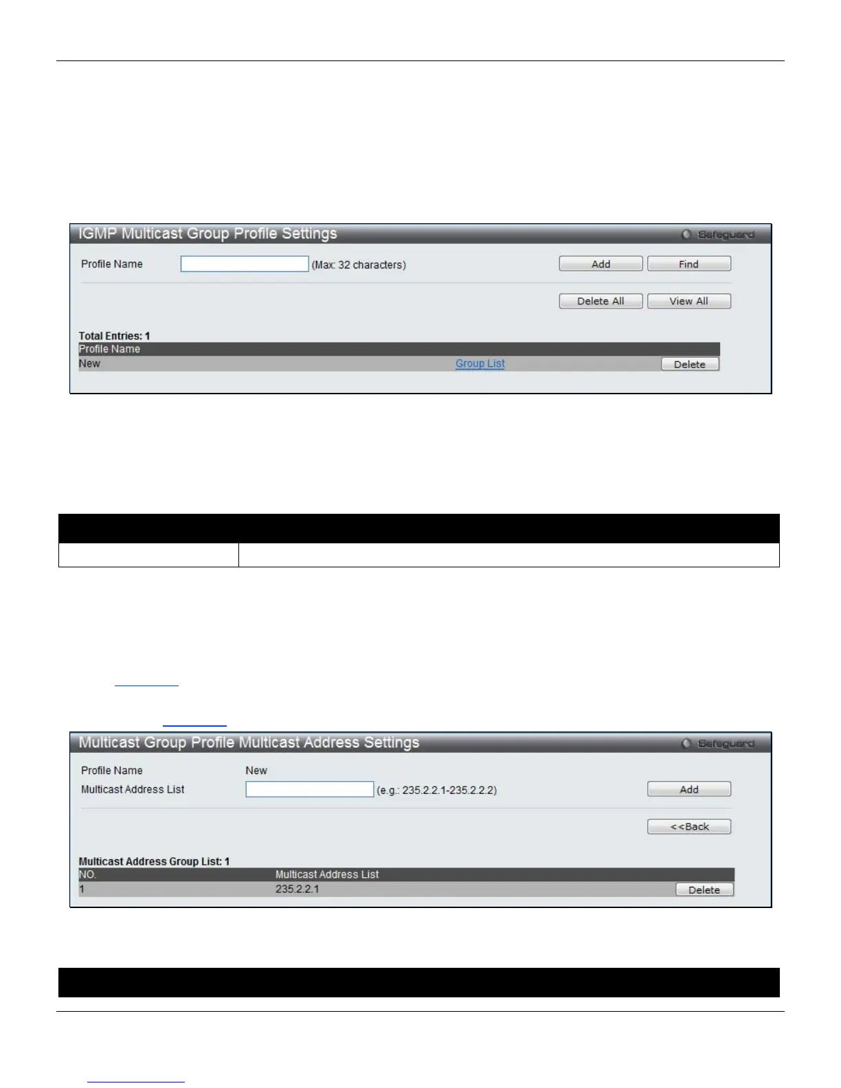 IGMP Multicast Group Profile Settings