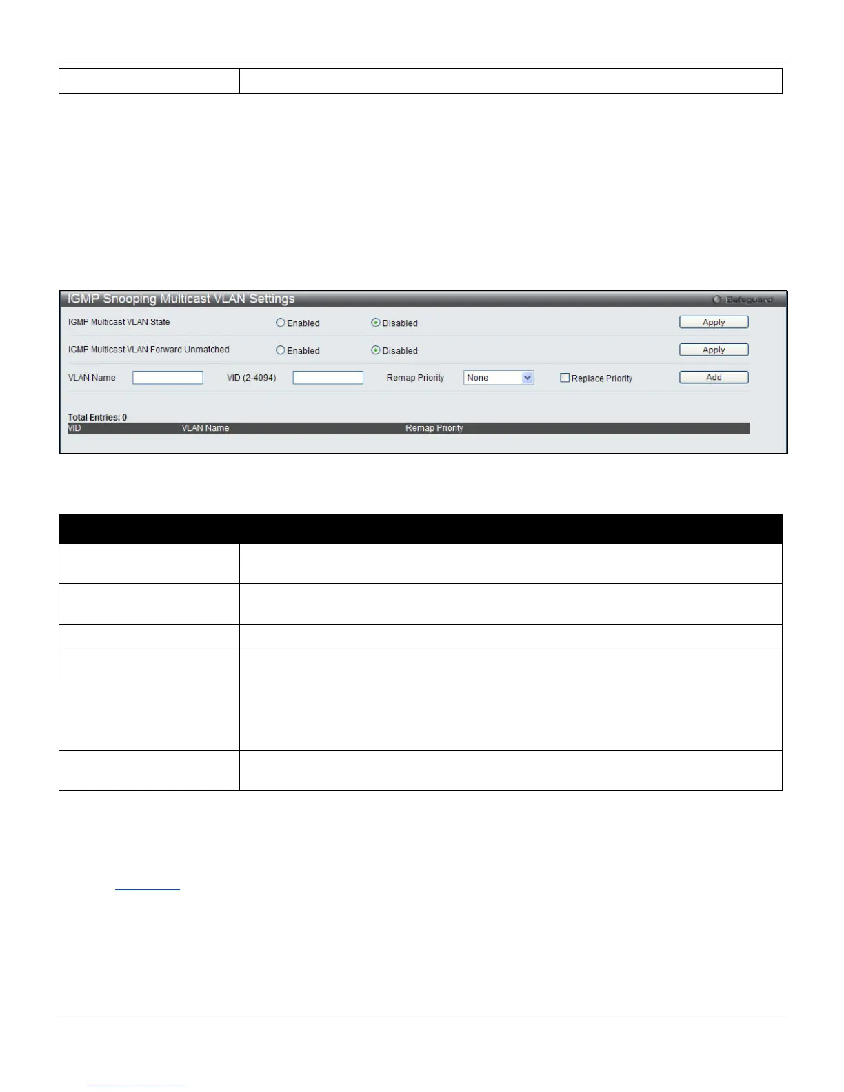 Click the radio buttons to enable or disable the IGMP Multicast VLAN Forwarding