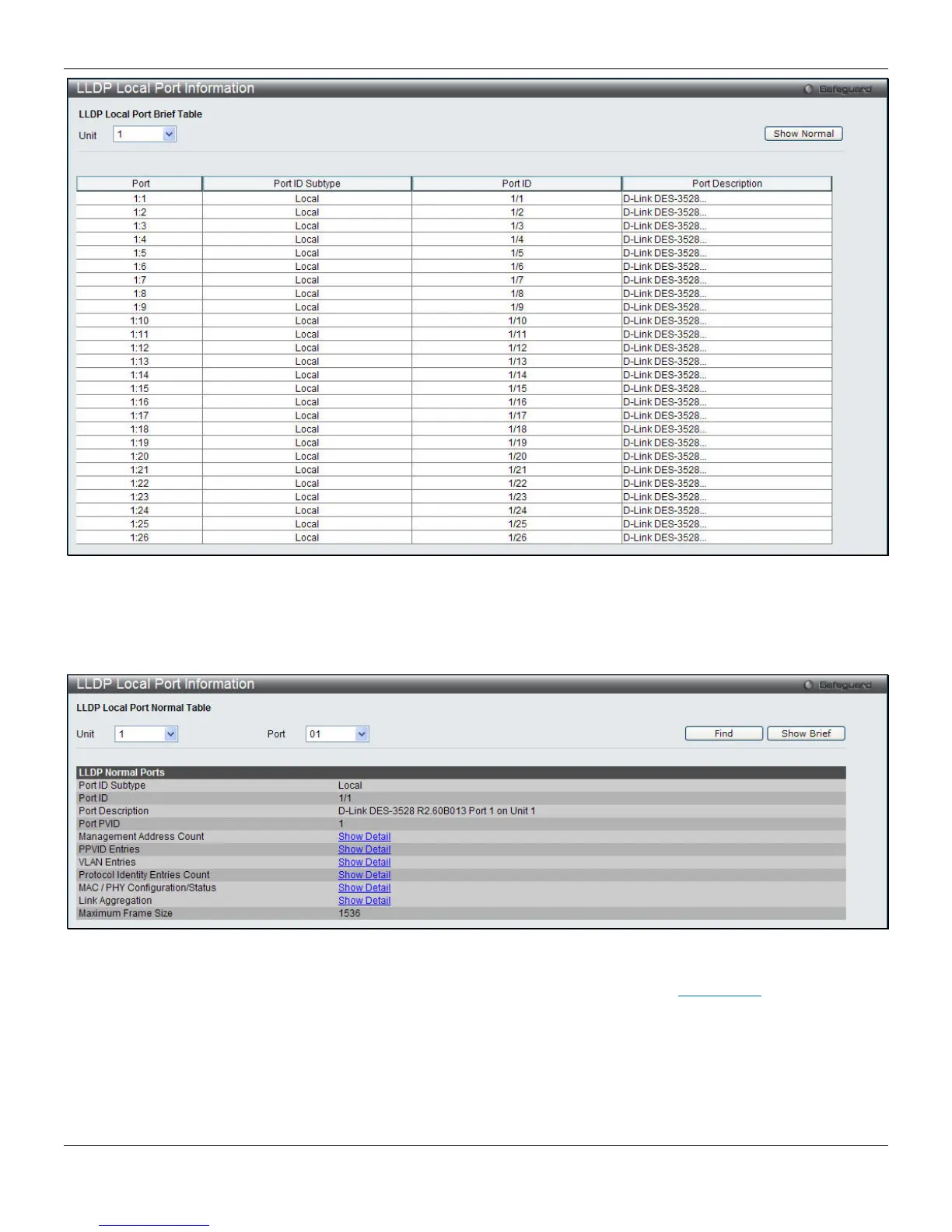 To view the brief LLDP Local Port information page per port, click the Show Brief button.