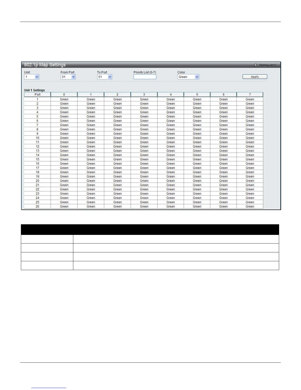 To view the following window, click QoS > 802.1p Settings > 802.1p Map Settings, as shown below:
