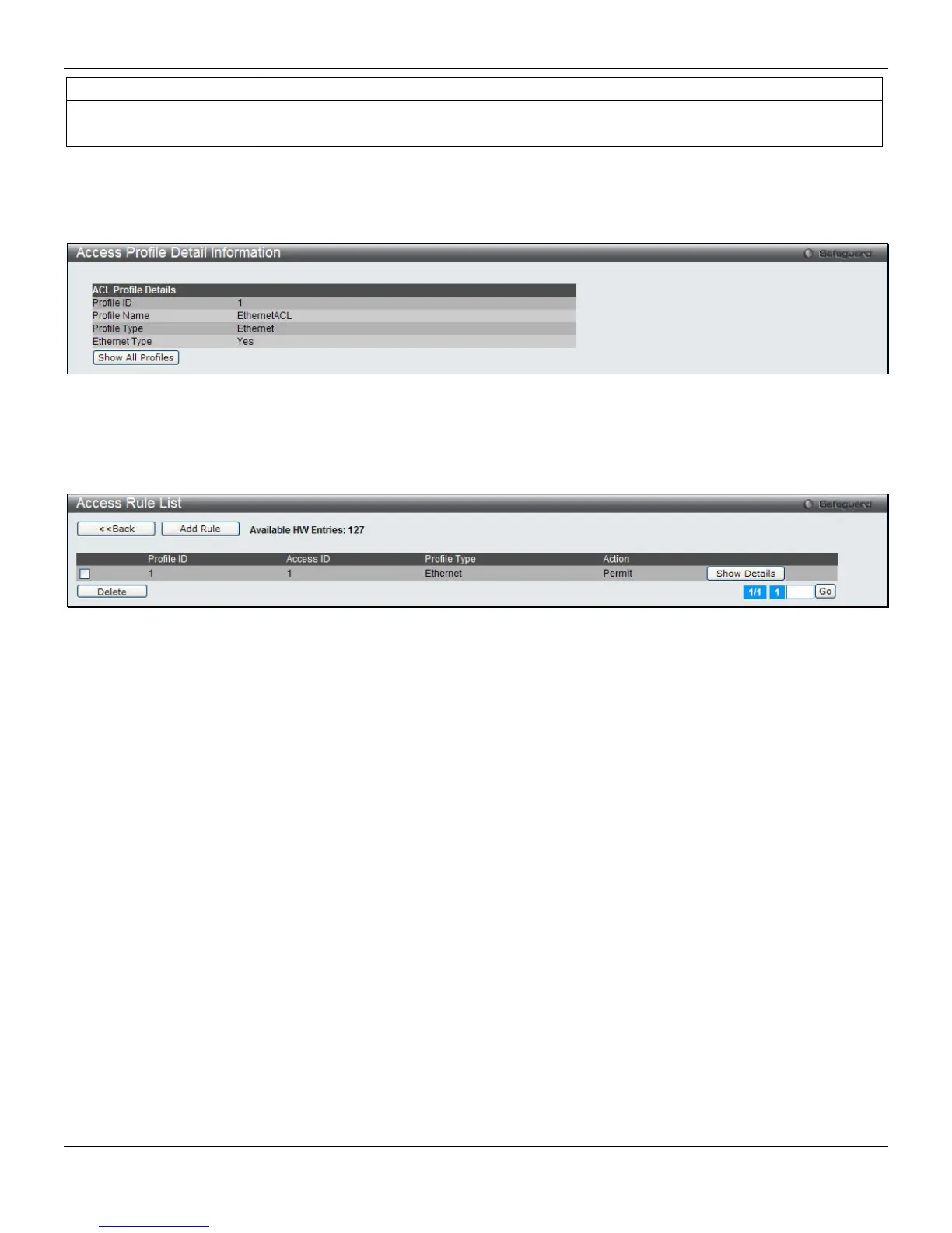 Figure 7-5 Access Rule List window (Ethernet ACL)